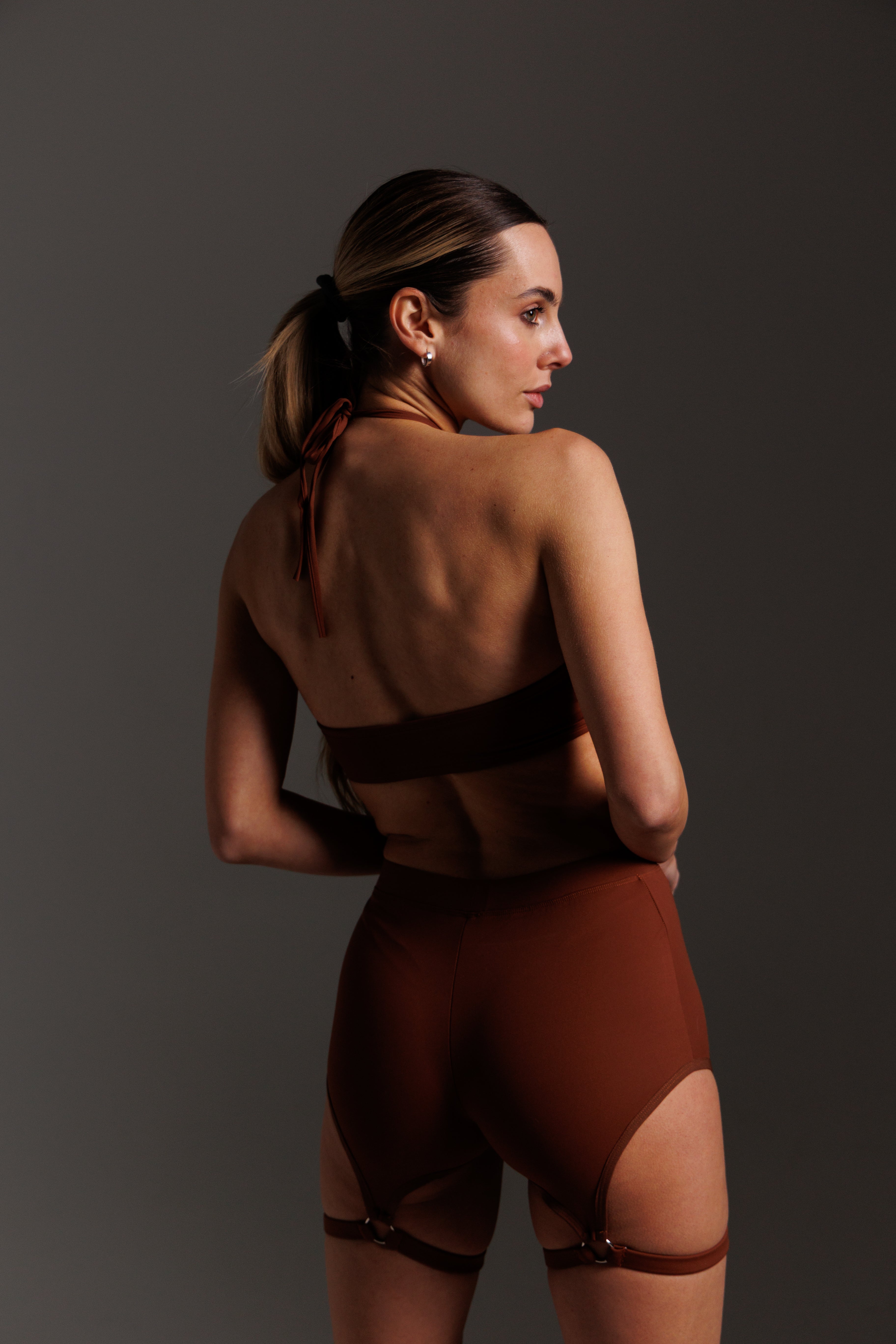Design . Le short est taille haute, fixé à la taille par une bande élastique et au niveau des jambes par des ceintures (en élastique avec régulateur de volume). Pendant la danse, ils ne gênent pas les mouvements ; le logo de l'entreprise est situé sur le dessus.